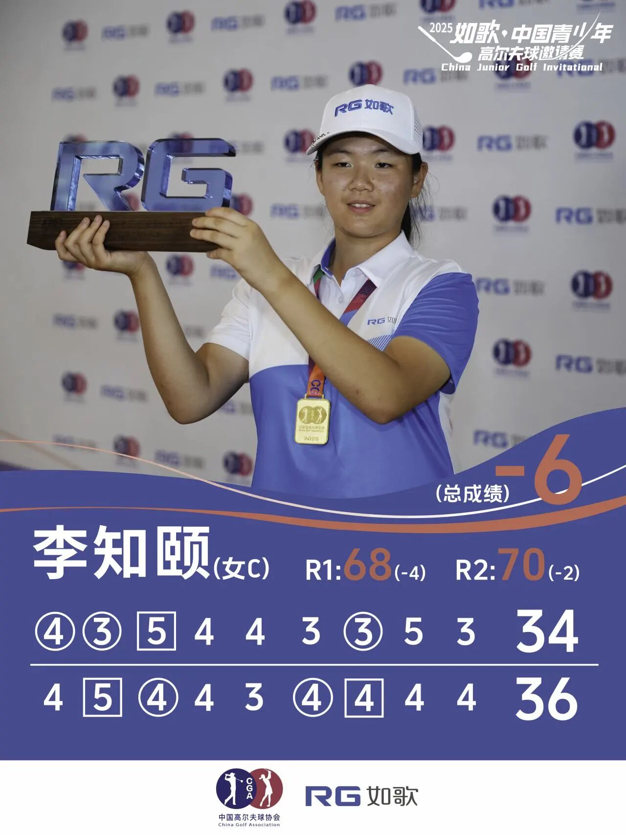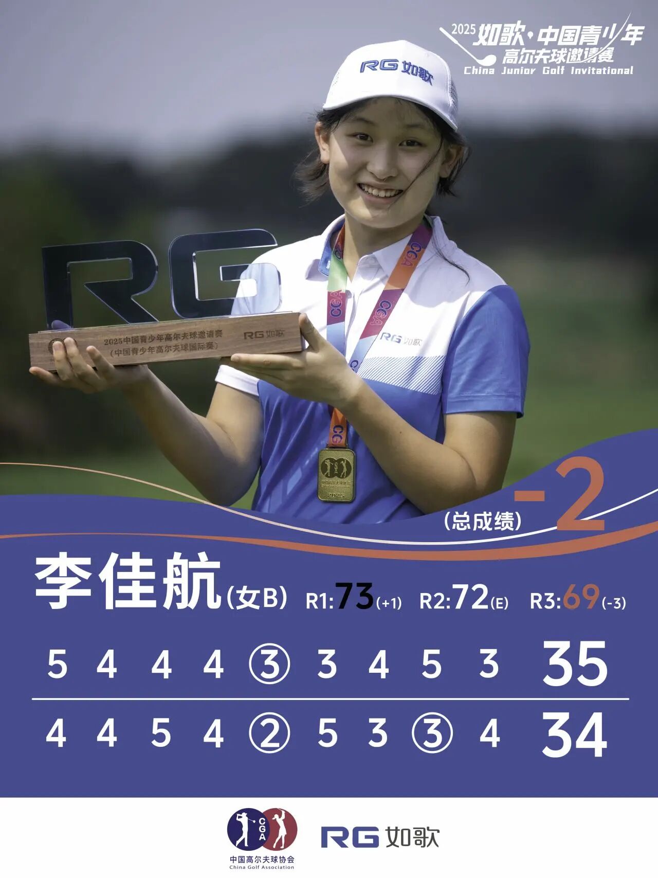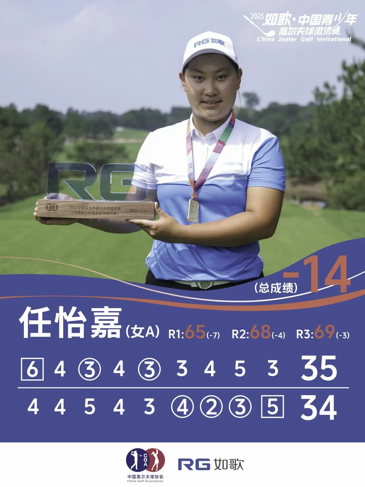 同時(shí),作為女子A、B組混合排名桿數(shù)最低者,任怡嘉也成功獲得2025年AJGA如歌高爾夫青少年冠軍賽(AJGA RG Golf Junior Championship)外卡名額。作為中國青少年女子球員中的佼佼者,任怡嘉近年在國內(nèi)外賽場上都積累了豐富的經(jīng)驗(yàn)。她也透露,接下來暑假計(jì)劃還沒完全定下來,但非常希望去參加這場AJGA的賽事。